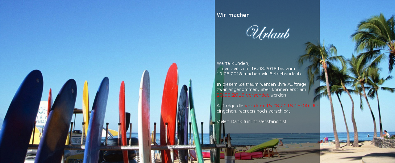 Betriebsurlaub vom 16.08. - 19.08.2018